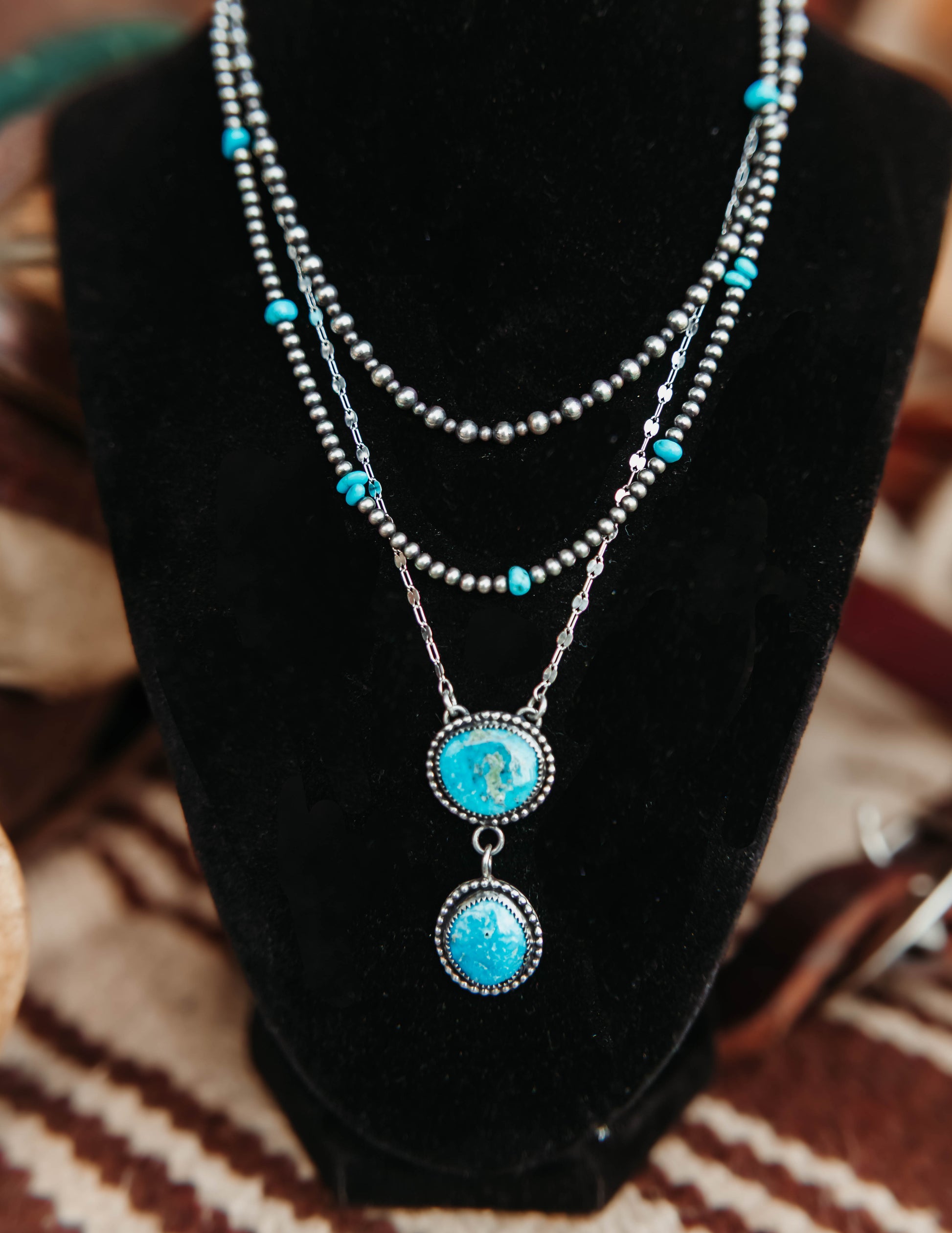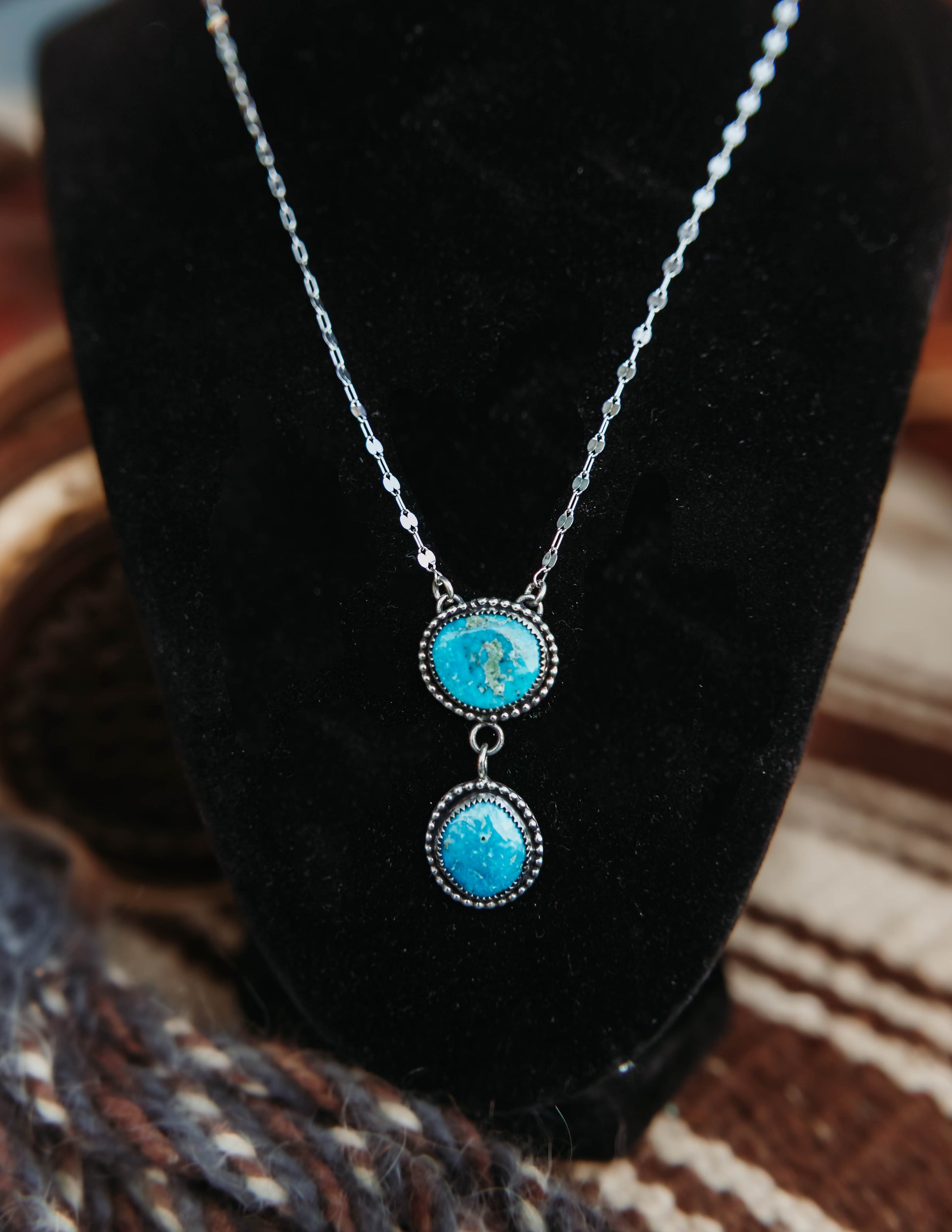 Pretty .925 Sterling Silver and Turquoise! She pairs beautifully with pearls or any silver! This necklace includes the chain. Simple and elegant, but can easily be dressed up and put in a large or small stack! Vibrant blues.