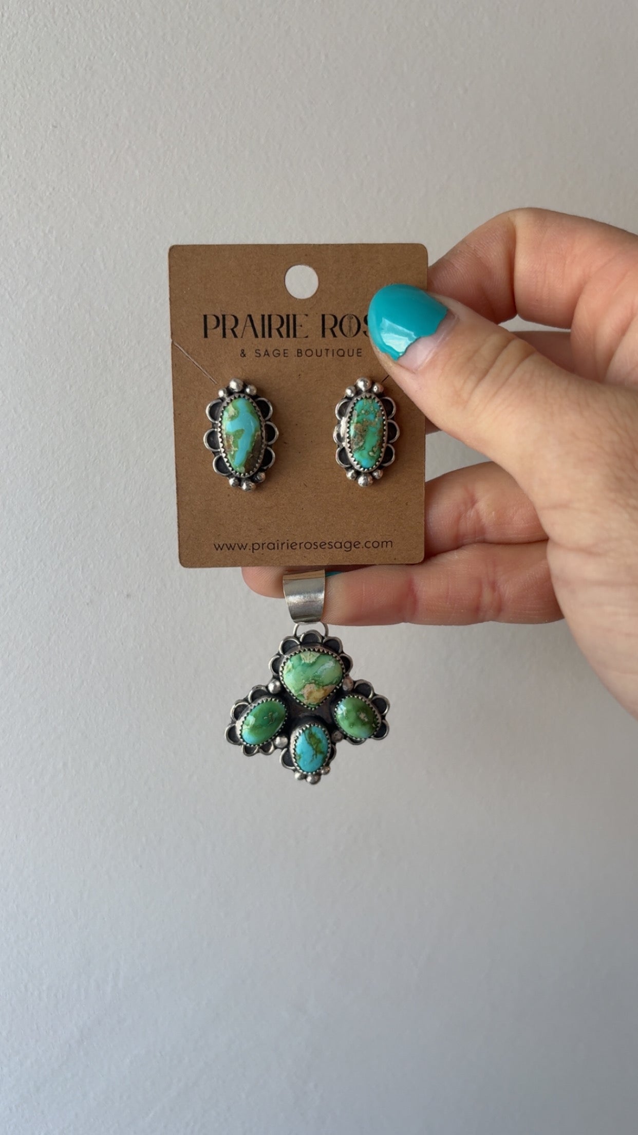 This is a perfect piece for any stack! .925 Sterling Silver and Sonoran Mountain! She pairs beautifully with any blue or green turquoise. So easy to stack. Detail was meticulous and made to pair with both our Sugar Loaf Studs and/or Sagebrush Sea Drop earrings. For a full stack, you can add the Green River necklace!